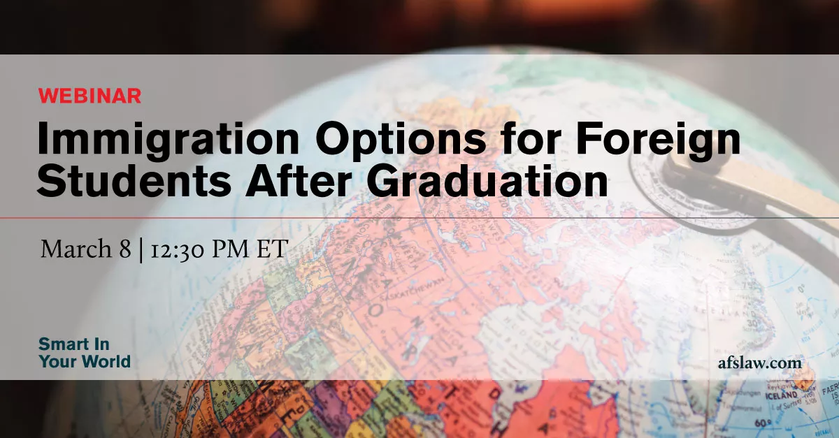 Join ArentFox Schiff Partner Berin Romagnolo as she discusses the various visa categories available to foreign students after graduation to allow them to live and/or work in the United States.