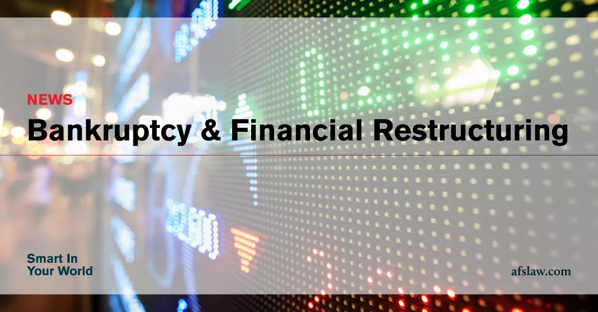 Arent Fox’s Bankruptcy & Financial Restructuring practice is at the forefront of the largest and most complex and high profile bankruptcy proceedings and restructuring throughout the United States. The group advises and represents clients in a broad range of industries that include cosmetics, banking and finance, energy, utilities, oil and gas, retail, entertainment, health care and life sciences, hospitality, nursing homes and assisted living, manufacturing, real estate, and telecommunications.