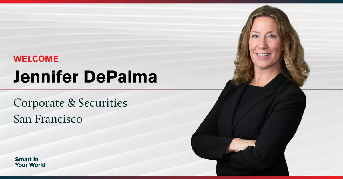 ArentFox Schiff announced today the expansion of its Corporate & Securities practice with the addition of Partner Jennifer DePalma in the firm’s San Francisco office. Jen will primarily counsel technology companies on securities, mergers and acquisitions and general corporate matters, as well as handle alternative investments for clients in the private equity, hedge fund, and venture capital space.