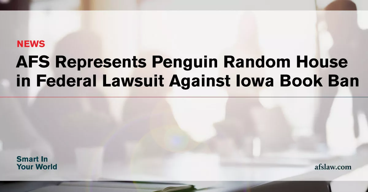 ArentFox Schiff Represents Penguin Random House in Federal Lawsuit Against Iowa Book Ban