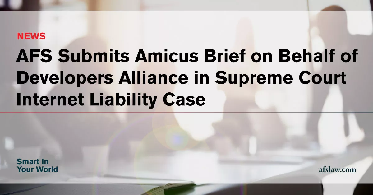ArentFox Schiff Submits Amicus Brief on Behalf of Developers Alliance in Supreme Court Internet Liability Case