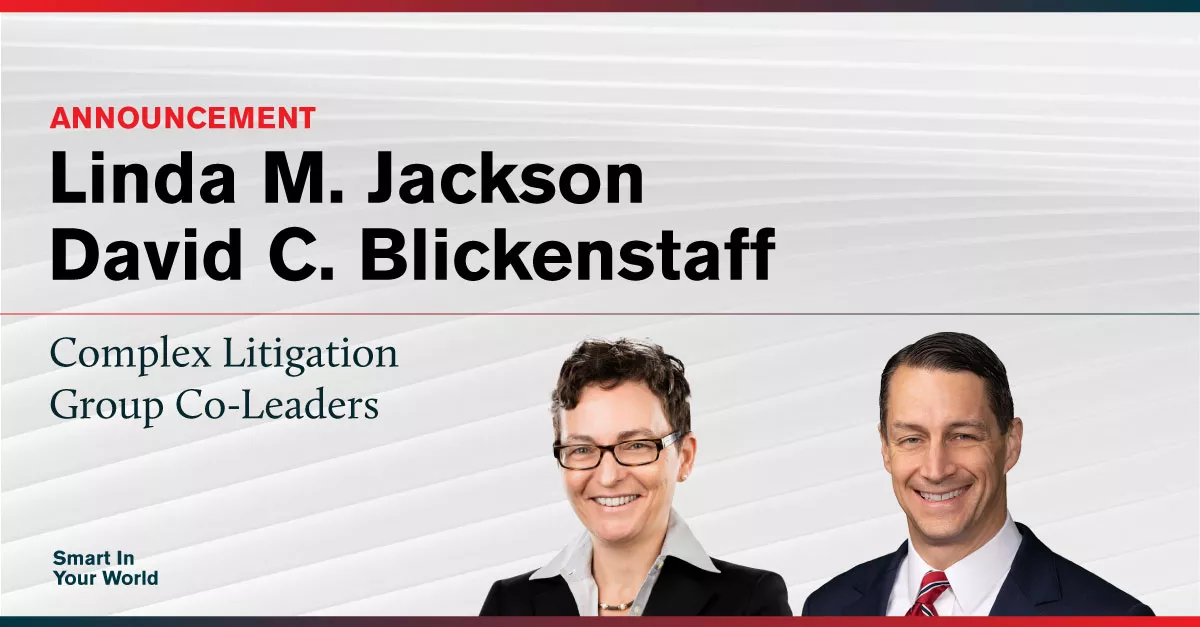 ArentFox Schiff is pleased to announce that Partners Linda M. Jackson and David C. Blickenstaff will lead the firm’s Complex Litigation practice group.