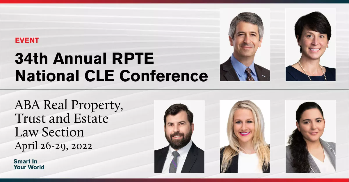 The Private Clients, Trusts & Estate practice is sponsoring the annual RPTE National CLE Conference April 26-29, 2022.