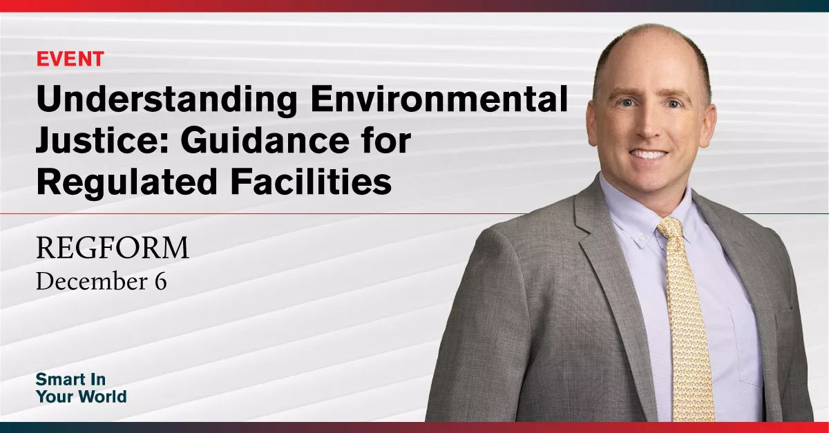 Partner Mike Showalter will present “Understanding Environmental Justice: Guidance for Regulated Facilities” hosted by REGFORM on December 6, 2022.