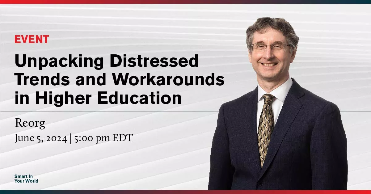 Les and his co-panelists will discuss distressed trends in higher education and workarounds for high yield credits in the sector. The virtual panel will be live streamed from 5 - 6:00pm EST. The in-person event will include a networking reception to follow.